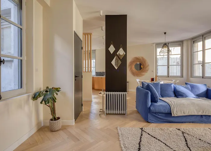 Appartement spacieux au cœur d'Angers étage 2 - 6 personnes est situé à 200 m de la place du Ralliement et à 25 km de l'aéroport d'Angers-Loire. Le domicile de 60 m² avec un jacuzzi se trouve à deux pas de l'église Collégiale Saint-Martin.